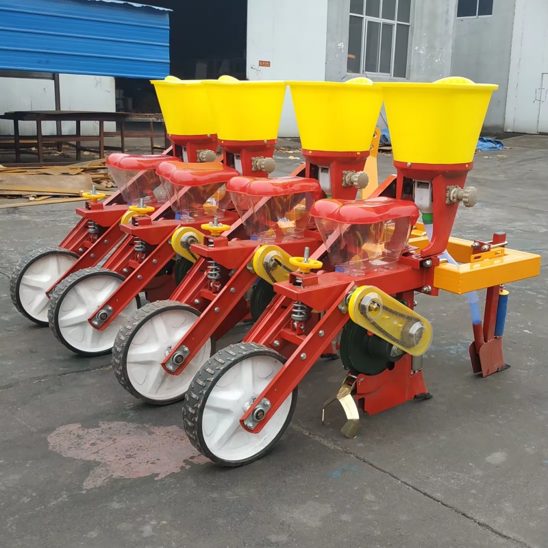 Este tipo de semeadora/plantadora de milho de precisão deve ser compatível com tratores de quatro rodas, utilizados para semear com precisão sementes simples ou duplas (à sua escolha). A semeadora também semeia fertilizante granulado cristalino durante a sementeira, realizando etapas como o sulcamento, fertilização, sementeira, cobertura do solo, compactação, etc. O resultado é uma sementeira de grãos individuais extremamente precisa, que permite poupar sementes, representando uma inovação revolucionária na indústria da plantação.